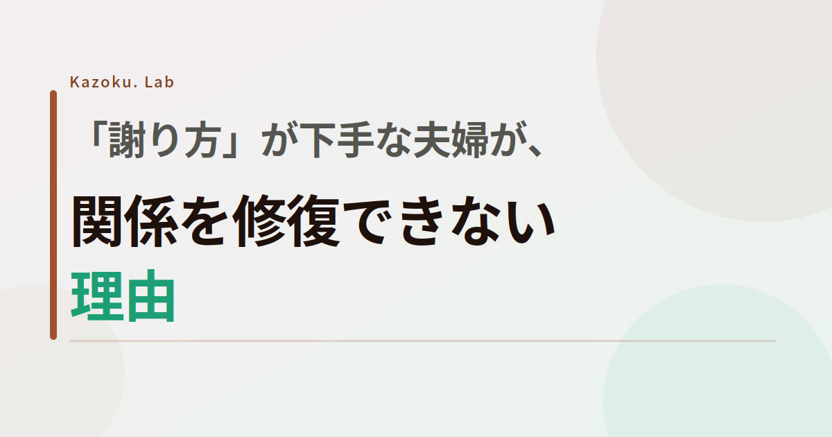 「ごめん」と言ったのに、なぜか相手の怒りが収まらない。謝ったはずなのに、その後もしばらく空気が重い。「もういいよ」と言われたのに、どこかすっきりしない——。 謝罪は、言葉にするだけでは伝わらないことがあります。「謝った」という事実と、「謝りが伝わった」は別のことです。夫婦の間でのめごとが長引くとき、多くの場合「謝り方」に原因があります。