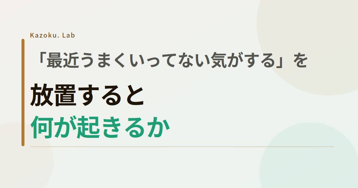 「なんか最近、うまくいってない気がする」 こういう感覚が生まれたとき、多くの人はいったん保留にします。忙しいから、疲れているから、気のせいかもしれないから——そう思って、その感覚をそっとしまいこみます。 でも、「気がする」という段階は、実はとても大切なサインです。まだぼんやりしているから、小さく動けるタイミングでもあります。これを放置し続けると、何が起きるのかを整理してみます。