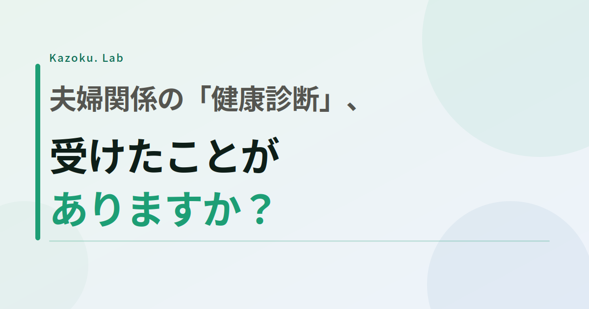 毎年、体の健康診断は受ける。でも、夫婦関係の「健康状態」を確認したことは、一度もない——そういう夫婦は、実はとても多いのではないでしょうか。 体の健康診断は、自覚症状がなくても受けます。問題が起きてからでは遅い場合があるから、定期的に状態を確認して、早期に対処するためです。夫婦関係も、まったく同じことが言えます。 「うちは特に問題ないから大丈夫」と思っているとき、じわじわと変化が進んでいることがあります。気づいたときには、かなり距離が開いてしまっていた——というケースは少なくありません。