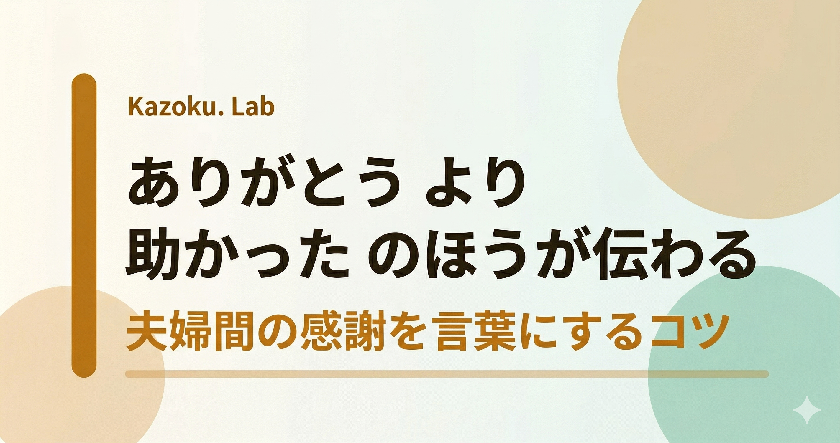 「ありがとう」って、言えていますか? パートナーに毎日感謝しているつもりでも、実際に声に出している回数は思っているより少ないかもしれません。「言わなくてもわかるだろう」「当たり前のことだから」と思って、気づけば感謝を飲み込んでいる——そういうことが、忙しい日々のなかでは起きやすいんですよね。 でも、感謝を声に出すかどうかは、夫婦関係に思っている以上の影響を与えているかもしれないんです。