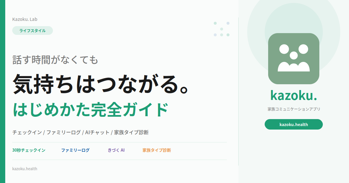 子どもが生まれてから、パートナーとゆっくり話す時間が取れていますか? 仕事から帰れば子どものお世話が待っていて、寝かしつけが終わればもうくたくた。「ちゃんと話したい」と思いながら、気づけば何日も経ってしまう——そんな毎日を過ごしているご家族も、少なくないかもしれません。 「kazoku.」は、そんな忙しい夫婦のために作られた家族コミュニケーションアプリです。1日わずか30秒から始められ、直接話せない日も気持ちをつなぎ続けることができます。この記事では、はじめてのかたにも分かりやすく、基本の使い方とおすすめの活用方法をご紹介します。