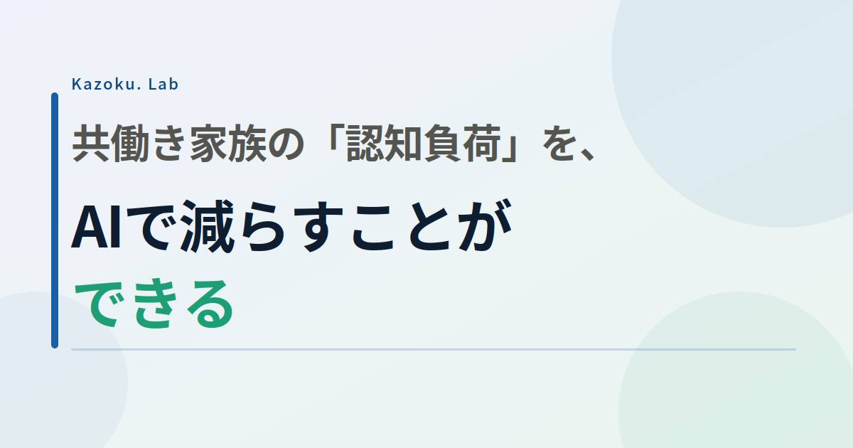 「なんでこんなに疲れているんだろう」——仕事も、家事も、育児も、特別なことは何もしていないはずなのに、夜になるとぐったりしている。 この疲れの正体のひとつが、「認知負荷」です。体を動かした疲れではなく、1日に無数の「小さな判断」をし続けることによる、脳の消耗です。 共働きで子育てをしている家庭では、この認知負荷が特に高くなりやすいと言われています。そしてそれは、夫婦の余裕にも、関係にも、じわじわと影響を与えていきます。